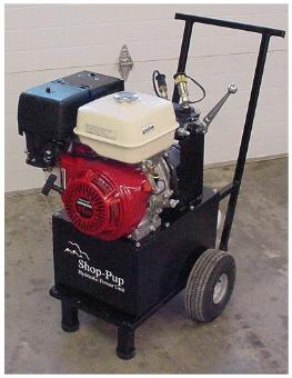 | Shop Pup This is a wheeled, portable Honda gasoline powered hydraulic power unit. |